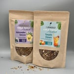 Zutaten: Apfelstücke (Apfel, Säuerungsmittel: Zitronensäure), Karottenstücke, Aroma, Moringablätter, Süßkraut, Holunderblüten (1%)